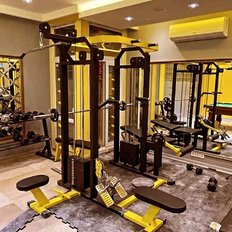 - [ ] انجام کلیه حرکات بالاتنه و پایین تنه فقط با یک دستگاه با سطح اشغال دو متر مربع 1. جلوپا 2. پشت پا 3. لت 4. قایقی 5. نشر از جلو 6. نشرجانب 7. نشر خم 7. جلوبازو 8. پشت بازو 9. کول سیم کش 10. شکم سیم کش 11. اسکوات12. هالتر سرشانه13. هالتر بالاسینه 14. هالتر پرس تخت 15. هالتر زیربغل 16. هالتر خم 17. کول هالتر 18. پارلل 20. بارفیکس دست باز21. بارفیکس دست جمع 22. مسگری 23. تی بار و برعکس 24. ساعد سیم کش. پشت بازو تک دست